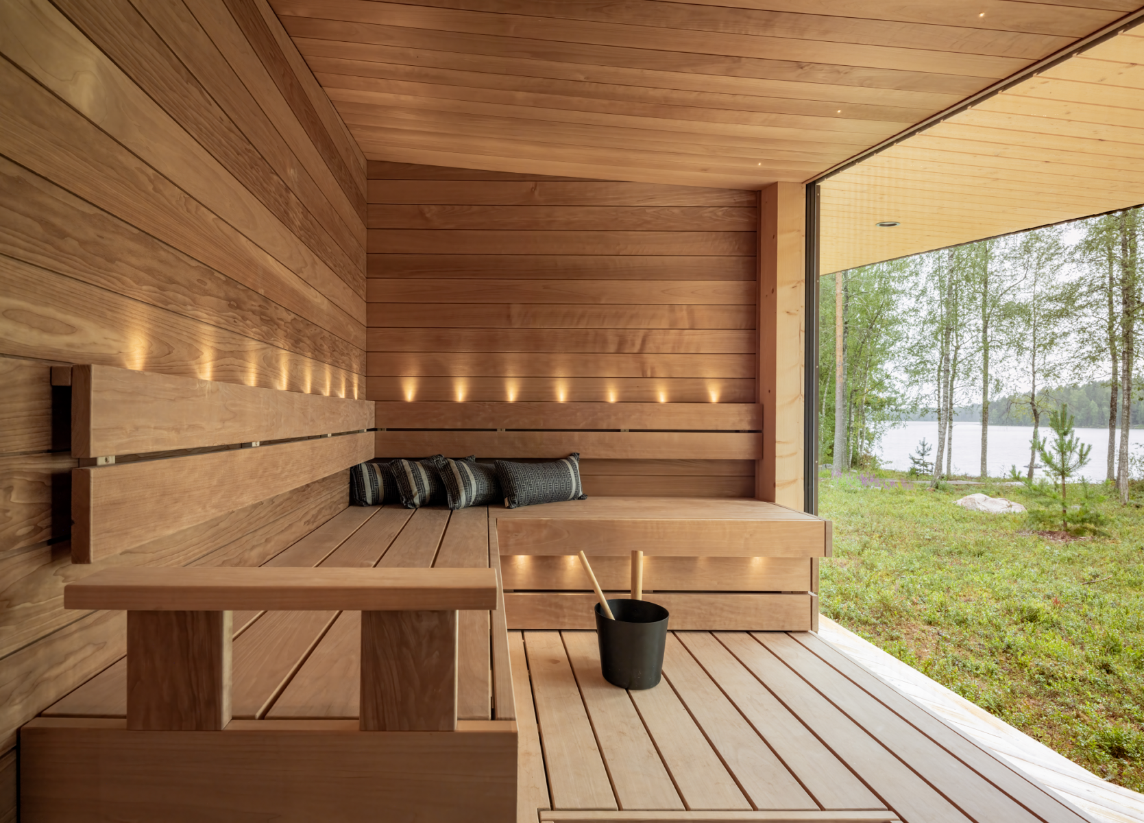 Im Inneren rahmt die Raumaufteilung gezielt unterschiedliche Perspektiven auf die idyllische Seelandschaft. Jeder Raum eröffnet einen eigenen Ausblick und macht die Natur zum integralen Bestandteil der Architektur.