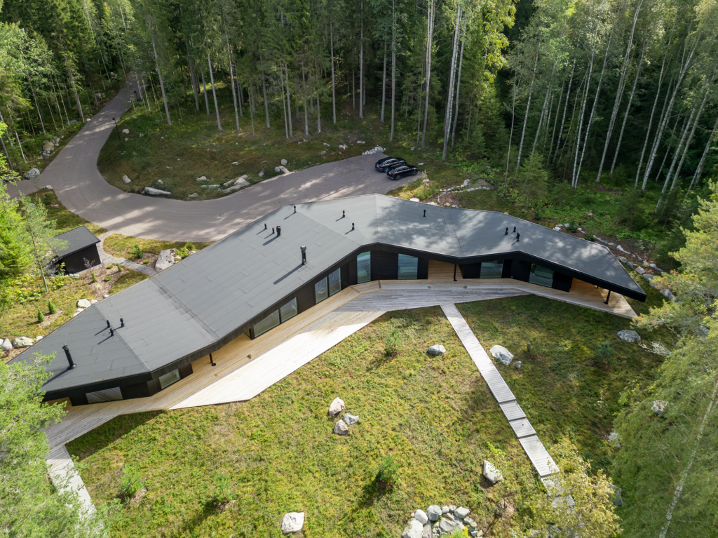 Sie wurde vom Architekten Marko Simsiö (KOAN Architecture) entworfen und von Finnlog im finnischen Lohja realisiert. Das Besondere an diesem Projekt ist die Nominierung für den Wood Award 2025.