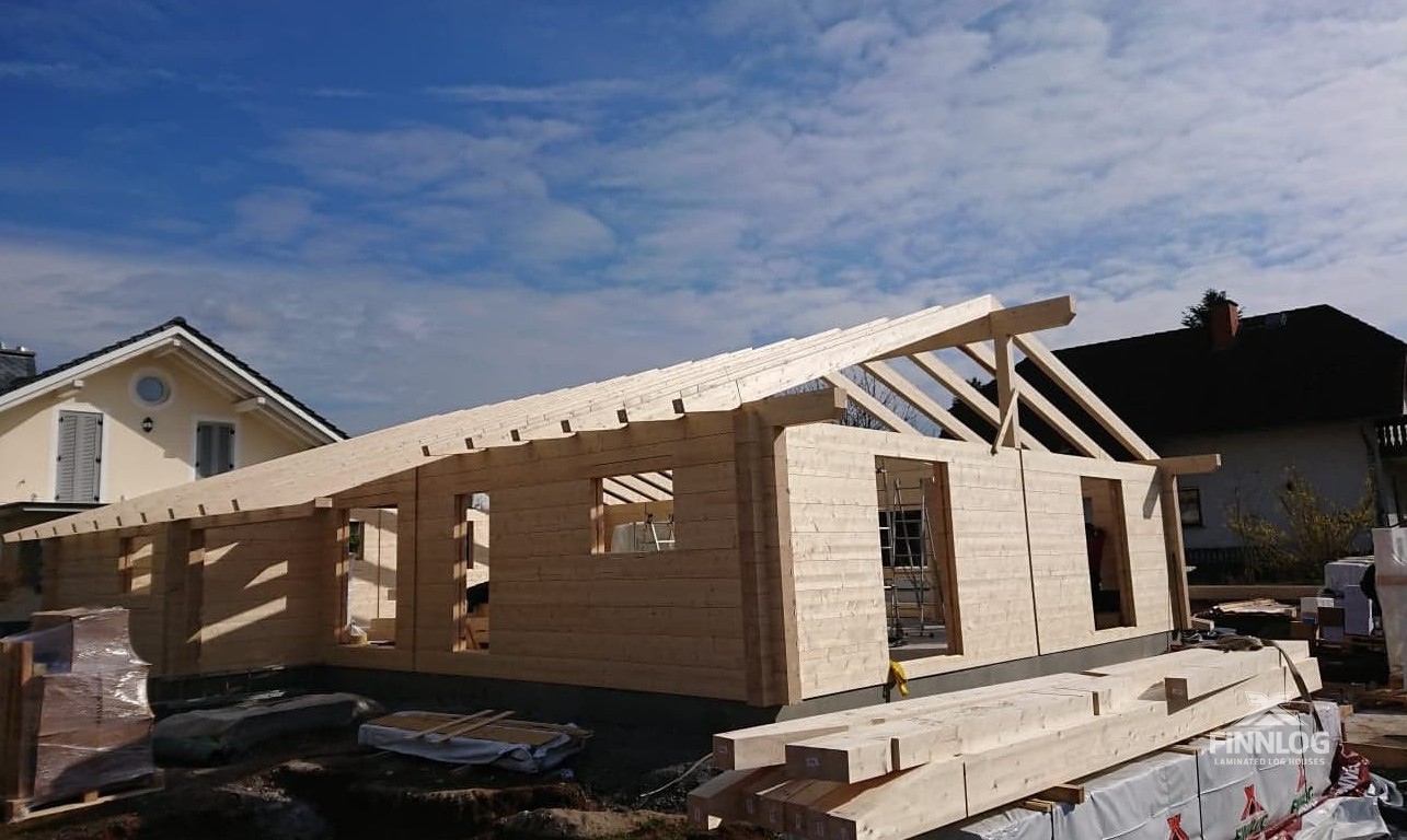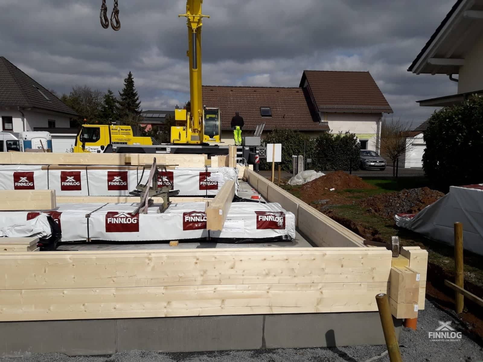 In Hessen begonnen die Bauarbeiten für ein Privathaus aus Leimholz. Es handelt sich um ein einstöckiges Privathaus aus Blöcken mit einem Umfang von 180×260 mm. Für den Bau ist das Unternehmen Richtmeister zuständig und auch Finnlog hat vor Ort 2 Bauspezialisten im Bereich Blockhäuser.