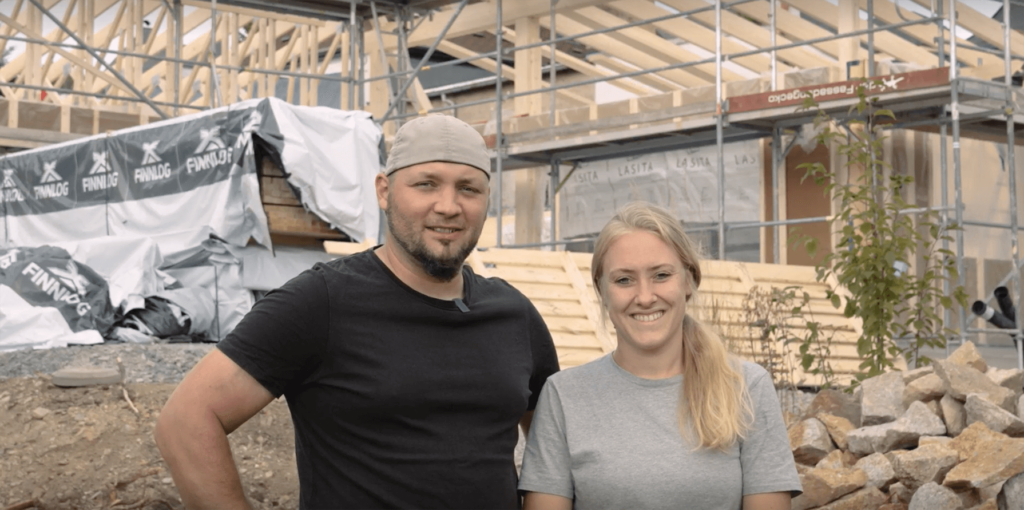 Auf der Suche nach dem perfekten Holzhaus im skandinavischen Stil kam die Empfehlung für Finnlog aus dem Bekanntenkreis genau richtig: Geprüft, für gut befunden und den Bau gestartet. Mit der Zusammenarbeit ist das Ehepaar sehr zufrieden. Mit einem direkten Ansprechpartner, der jederzeit für Fragen und die Kommunikation nach Estland zur Verfügung steht, haben sie für den Hausbau den richtigen Partner gefunden. Auch die Zusammenarbeit auf der Baustelle lobt das Ehepaar. Besonders begeistert sie die Richtmeistermontage. Es sei zwar anstrengend, aber einfach großartig, das eigene Haus mit aufzubauen.